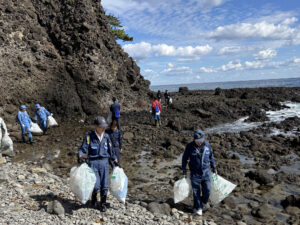 2025年10月10日、六ヶ所村産業協議会*主催の泊地区タタミ岩清掃奉仕活動に参加しました。