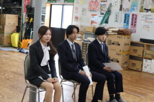 これから3ヶ月、新入社員研修と当社の全事業部の現場実習を経験します。