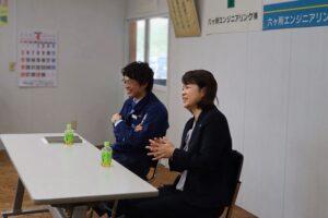 ![]() 新入社員と懇談する様子 |